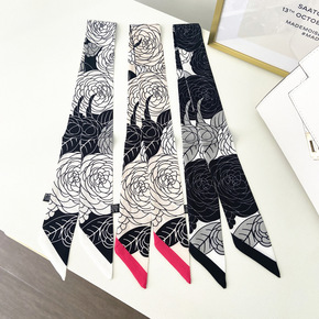 春季简约素色山茶花 女士飘带小丝巾绑包包手柄丝带 ...