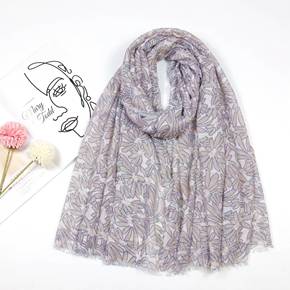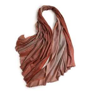 纯羊毛轻薄围巾女士复古印花毛边散须披肩2022年春...