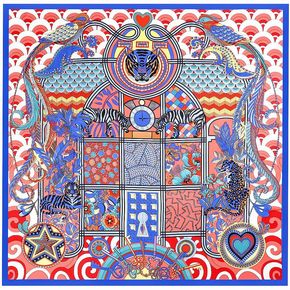 130cm跨境新款百兽图女士斜纹绸丝巾装饰防晒披肩...