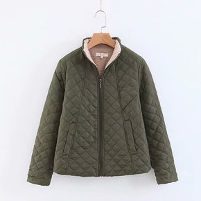 2018冬装新款韩版修身显瘦立领网格短款糖果色轻薄...