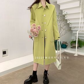 2022年秋冬新款披肩领一排扣牛油果绿双面手缝羊毛...