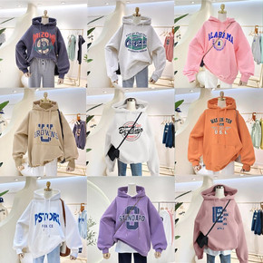 秋冬季韩版中长款女装连帽卫衣大码宽松印花女式上衣地...