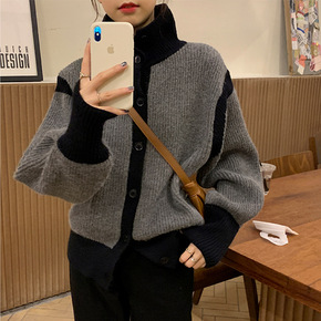 连帽针织衫女2022春秋新款韩版宽松糖果色毛衣外套...