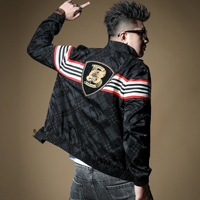 一件起批车标夹克欧美外贸休闲宽松大码飞行员外套运动...