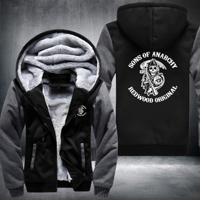 秋冬男士夜光斑点双帽薄绒卫衣外套...