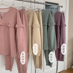 曼莉泰纯棉睡衣女秋长袖长裤2021秋冬款韩版简约可...