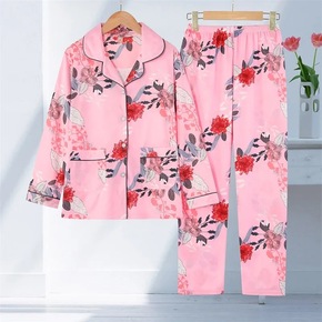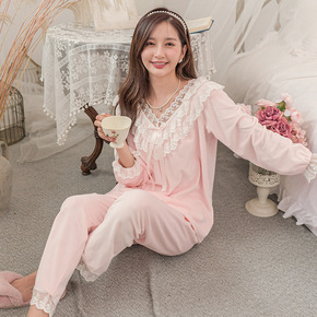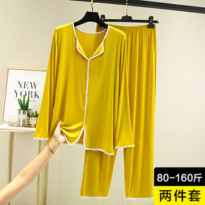 莫代尔睡衣套装女士秋季大码宽松长袖家居服套装休闲可...