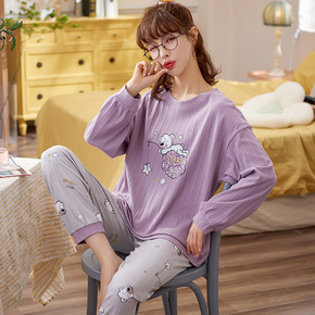 夏季睡衣女春秋款精梳棉长袖两件套装宽松可爱学生韩版...