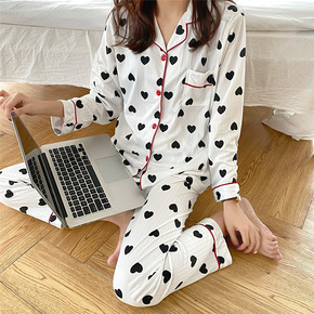 2021春秋季新款韩版ins甜美爱心长袖睡衣女休闲...