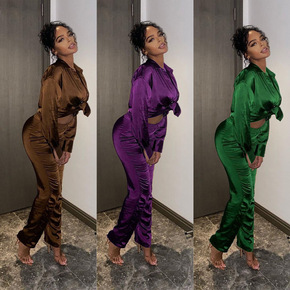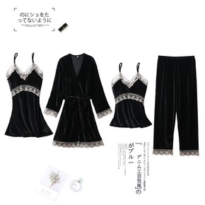 代发带胸垫女秋冬夏季性感仿真丝绸睡衣五件套吊带女家...