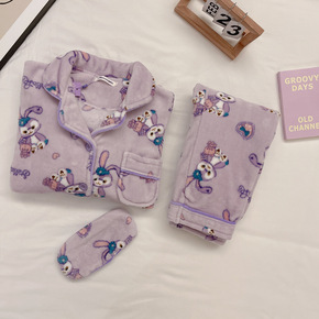 秋冬季法兰绒星黛露睡衣女ins韩国可爱甜美珊瑚绒宽...