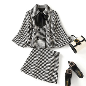 范智乔 格子连衣裙女小个子早秋两件套裙冬百褶吊带裙...