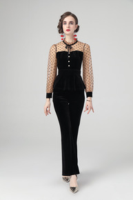 新款金丝绒睡衣女两件套带胸垫吊带睡裙蕾丝边性感睡袍...