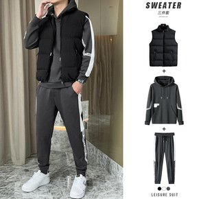 冬男加绒三件套棉休闲运动卫衣青年大码肥佬贴标450...