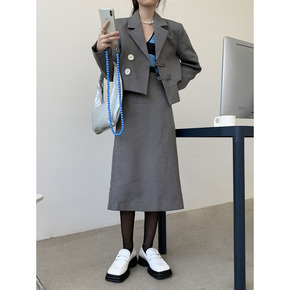 秋冬经dia准时报到! 复古薄款毛呢千鸟格套装 外...