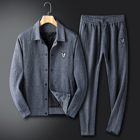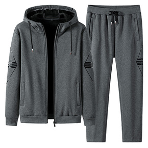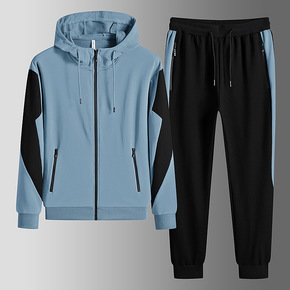 2021 跨境春秋新款男士休闲套装连帽开衫卫衣运动...