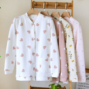 睡衣女保暖法兰绒三层夹棉高级感加厚加大码开衫简约奢...