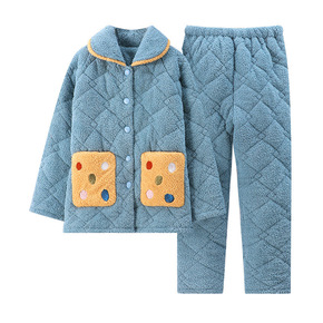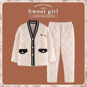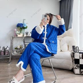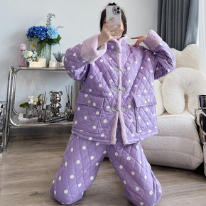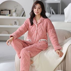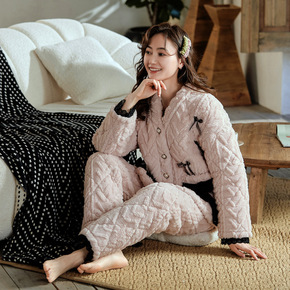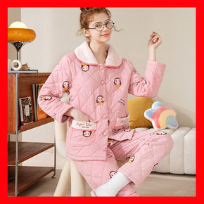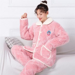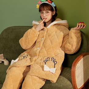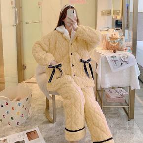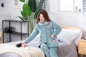 保暖女士夹棉睡衣韩版三层夹棉加厚法兰绒套装厚款家居...