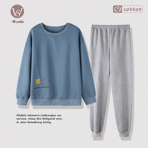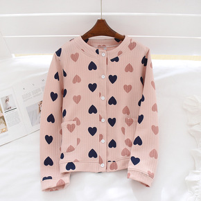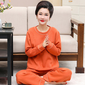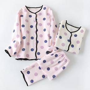 全棉空气层睡衣女 桔子夹棉长袖长裤家居睡衣 秋冬加...