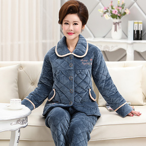 冬季珊瑚绒夹棉睡衣中年女士冬款三层加厚保暖棉袄加大...