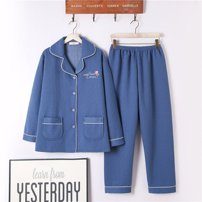 5521牛仔蓝女夹层青中年女士空气棉睡衣冬款薄夹棉...