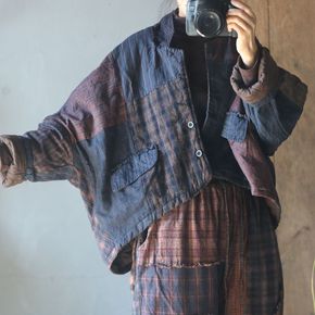 老布短棉袄 随机拼接水洗做旧棉衣外套 夹棉...