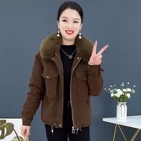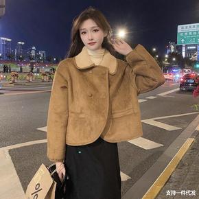 棉服2021新款女冬季时尚加绒羊羔毛棉衣女士短款外...