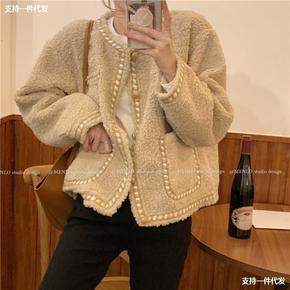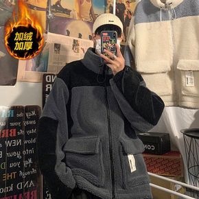 秋冬季2021年新款复古宽松百搭设计感小众仿羊羔毛...