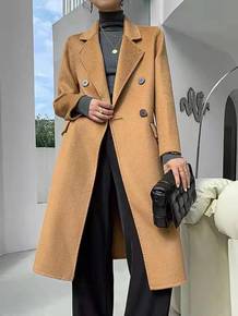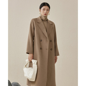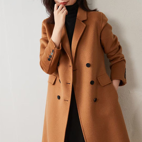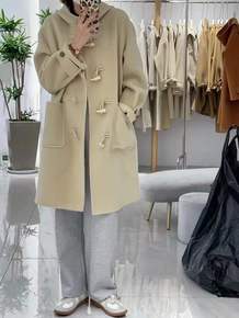 韩货高品质20羊绒手工牛角扣双面羊绒大衣女中长款宽...