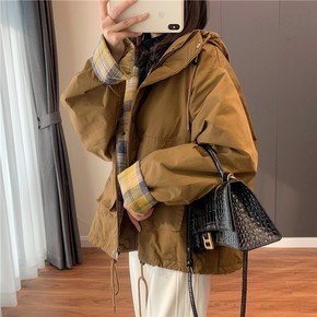 派克服女2021冬装新款宽松外套大毛领洋气短款棉服...