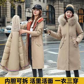 2021新款中戏情侣羽绒棉服女男超长款过膝加厚大码...