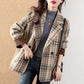 实拍新款气质通勤格子毛呢两件套2021年秋冬季韩版...