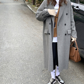 秋冬新款韩国东大门单面羊绒大衣女中长款过膝宽松羊毛...