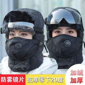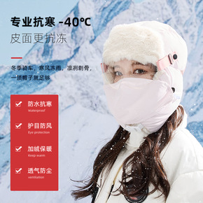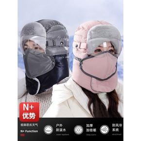 雷锋帽秋冬女骑电动车保暖帽户外寒男护耳帽带面罩雾...