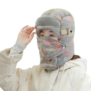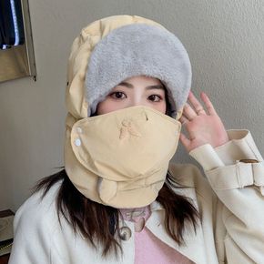 2022冬季雷锋帽女蝴蝶绣花加厚护耳口罩户外骑车滑...