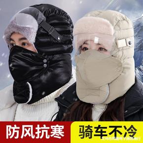 帽子男士户外电动车保暖棉帽东北雷锋帽女冬季骑车面罩...