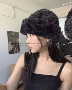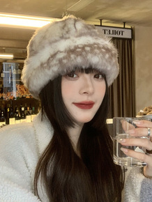 豹纹渔夫帽女秋冬日系百搭复古毛茸茸保暖盆帽冬季加厚...