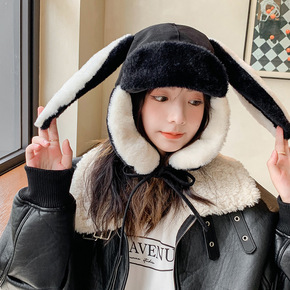帽子女兔耳朵可爱雷锋帽秋冬网红毛绒帽子学生护耳户外...