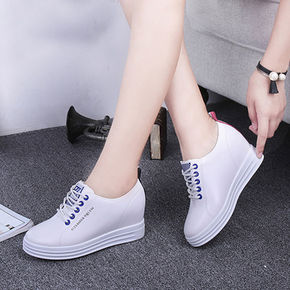 包邮春季小白鞋女冬内增高厚底一脚蹬懒人坡跟单鞋学生...