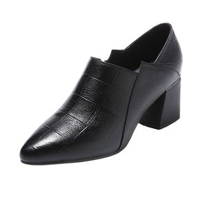 2022新款春季粗跟单鞋女中跟尖头皮鞋春秋高跟鞋英...