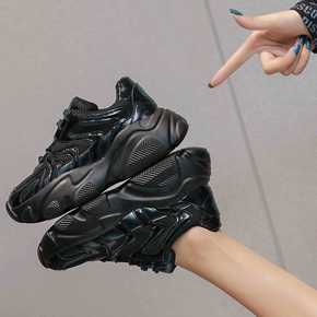 韩版黑色老爹鞋女款厚底单鞋 2022秋季新款休闲运...