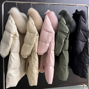 2021冬季新款富士山银狐狸皮草大毛领加厚女式长款...