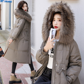 羽绒棉袄女2021冬季新款中长款棉衣女学生毛领收腰...