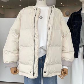 2021冬季新款保暖面包服女韩版休闲简约圆领纯色宽...