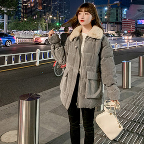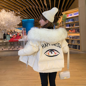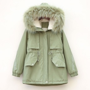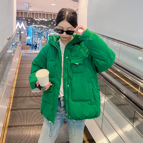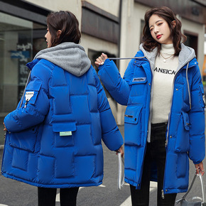 羽绒棉服女2022新款冬季韩版宽松工装拼色连帽中长...