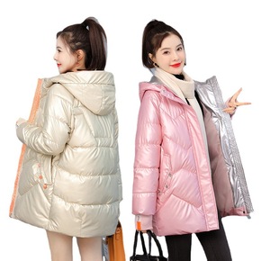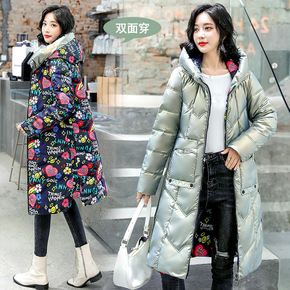 双面穿羽绒棉服女装中长款新款冬季棉衣亮面棉袄加厚大...