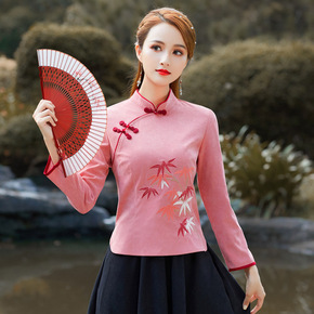 唐装女上衣秋冬新款中式修身中国风显瘦刺绣复古汉服长...