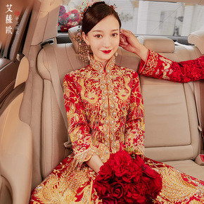 旗袍敬酒服新娘2021年新款春秋中式订婚结婚礼服平...