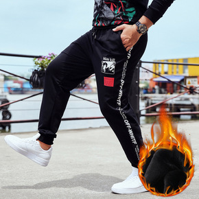 秋冬季加绒抽绳束脚裤男休闲裤子韩版潮流百搭嘻哈潮青...