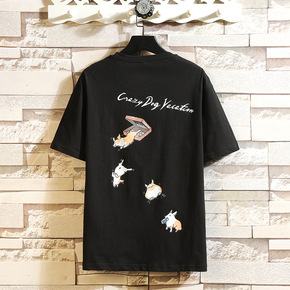 2022夏季新款男士日系大码圆领印花短袖T恤潮流青...